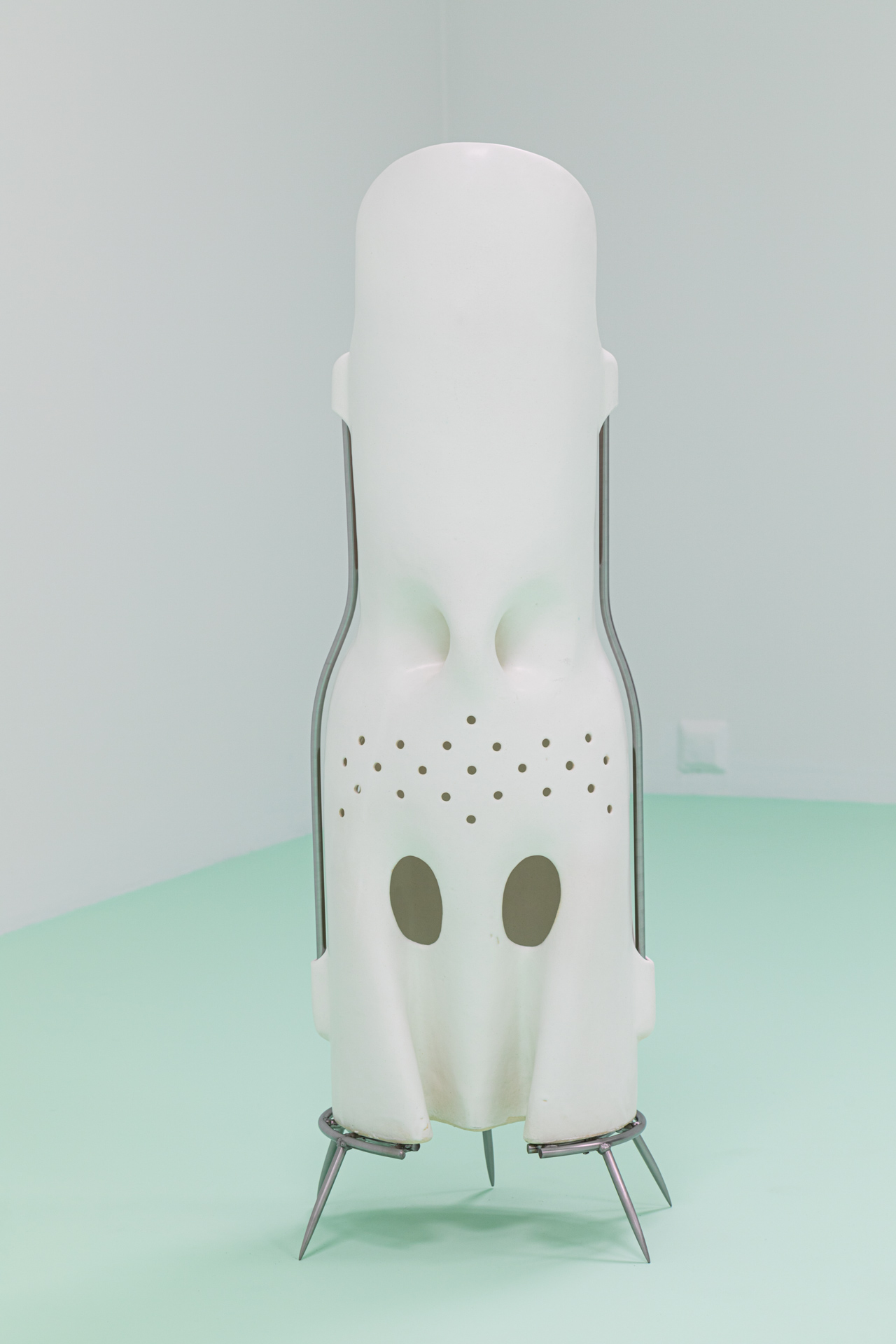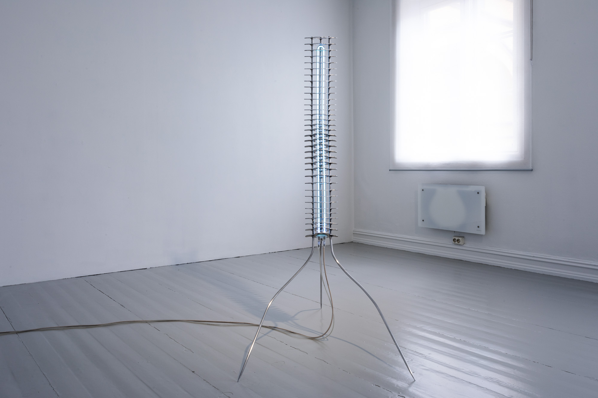 The entire installation is bathed in a yellow light, the hue of which seems exactly on the borderline between soothing and toxic waste. Linda Morell thus intuitively connects the current social atmosphere of reconciled limbo with the anxious anticipation of catastrophe. The situation suggests that even the threat of extinction will not change human habits. However, our species position, built on the exploitation and control of other species, obliges us to at least make a conscious effort to emancipate ourselves from the industries that non-consensually controls the lives of all earthly beings at the molecular level. The beginning of liberation is the change of the obsolete idea of the “naturalness” of our bodies.
