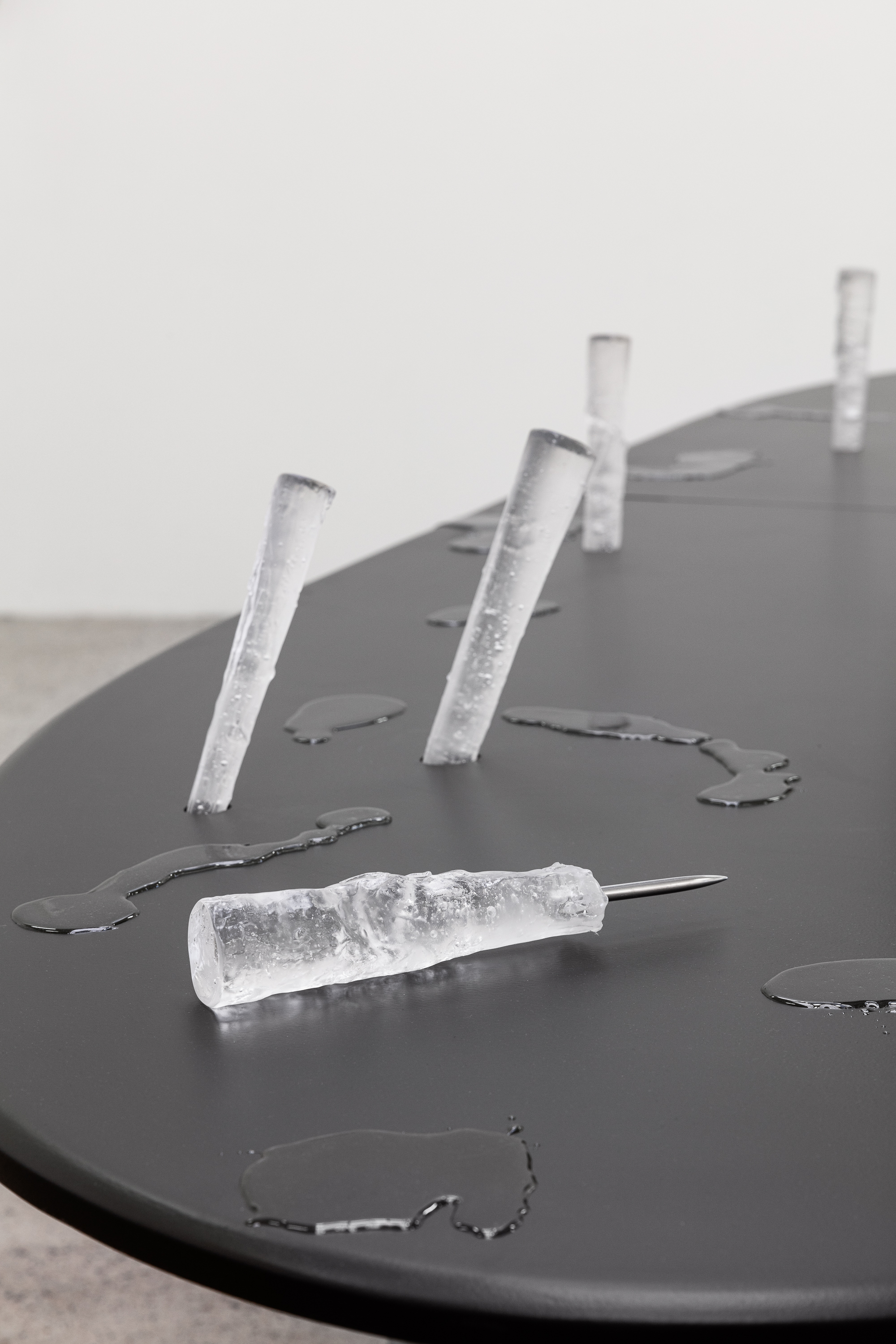 The exhibition Oil nebula uses the concept of the abyss, the vast cosmic sea as described in John Milton's Paradise Lost (1667) which separates earth from hell, as a metaphor for societal collapse. The project draws parallels to the jellification of the oceans, where ecosystems are changing and new organisms thrive. Inspired by the increasing prevalence of invasive species and environmental changes, the exhibition consisting of works in ceramics, glass, wood and aluminium strives to mythologize the defamiliarized earth. The works form a visual language which speaks about the future of the oceans and humanity whilst forming the inhospitable sea of the abyss itself. Like Milton’s abyss, simultaneously described as the worlds cradle and it's grave, the exhibition becomes an ouroboros focusing on both the perils and prospects of the future.